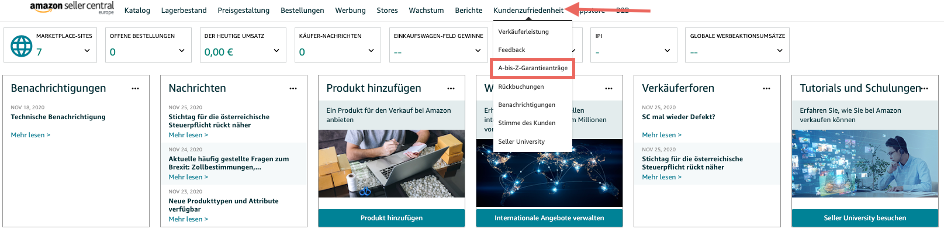 - Klicke unter Kundenzufriedenheit auf A-bis-Z-Garantieanträge.